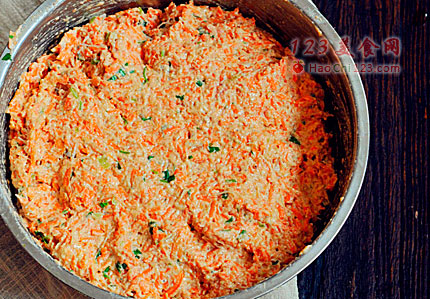 2、胡萝卜擦成丝最好在剁碎一下这样口感更好。