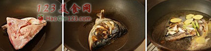 3、然后注入水至鱼头的四分之三处,大火煮开。