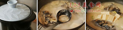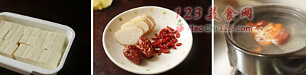 9、加入豆腐继续炖30分钟,最后加入煲好的天麻红枣枸杞水转小火再炖10分钟,烹入盐调味即可。