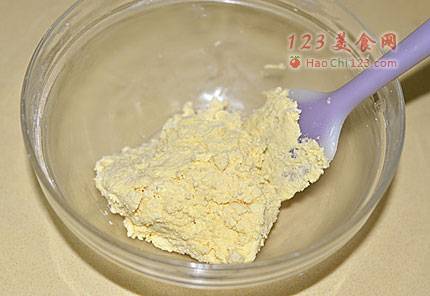 5、用刮刀拌匀至看不到面粉即可,此时预热烤箱180度。