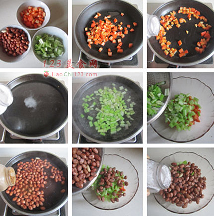 5、花生作为老百姓喜爱的传统食品之一,自古以来就有“长生果”的美誉。可别小看它,它含钙丰富,多吃能促进促进人体的生长发育;而它所含有极高的赖氨酸,可促进细胞发育,提高智力和增强大脑的记忆能力,同时赖氨酸也是抗老化,防早衰的重要成分;西芹、胡萝卜是我们日常生活中经常食用的种蔬菜;芹菜青脆爽口,色泽碧绿;胡萝卜小巧可爱,色彩红亮,都是用来做配菜极好的材料。[LaoYanHuo.com]