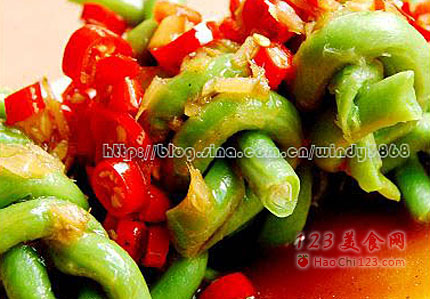 2、如果对火候没有把握,可以稍微煮熟一点,就切成长短一致的段摆盘淋汁,不用一定要卷成卷。如果这样,豆角可以用四季豆或菜花代替,味道也会很好,但四季豆一定要煮到熟透。