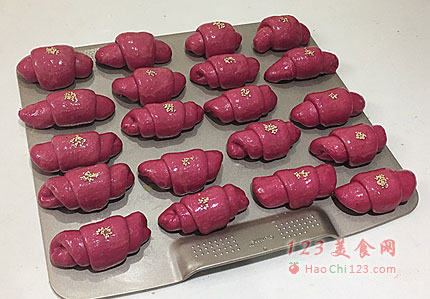 10、全部完成,摆放记得留有空隙,不然发酵,烘烤后都粘到一起。二次发酵完成,刷蛋液,粘芝麻点缀(二发可以放烤箱,放热水,可以用烤箱的发酵功能,可以用发酵箱,大至是要保持38度的温度,85%的湿度)。