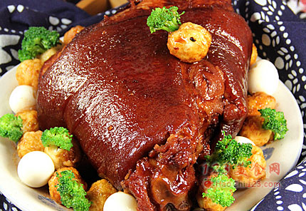 2、我以福、禄、寿、喜、财、贺新春的“福”字上一道硬菜“金蛋福肘”。我们北方人常说的肘子,在江南被称作蹄髈,肘子分为前肘和后肘,前肘结缔组织较后肘少,肥而不腻、瘦而不柴,烹饪肘子以前肘为上选。肘子是必备的年菜,寓意“招财进宝”,团团圆圆,富足肥美。金蛋,寓意多子多福,新的一年福气多多,财运多多。来年招财进宝讨个好彩头。[sushi.laoyanhuo.com]