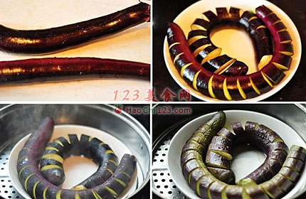 2、如果嫌麻烦可将茄子切条或者滚刀,同样的方法制作,味道相同,只有造型区别而已。