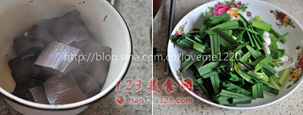 3、青蒜和韭菜都可以,和猪血都很搭配。