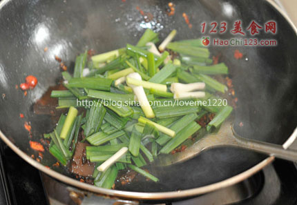 7、最后放入青蒜翻炒均匀即可。