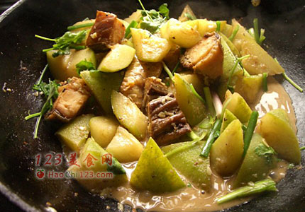 1、一盘香喷喷的鲩鱼干焖节瓜就上桌了。香,鱼干的香味渗入到清淡的节瓜里面,相得益彰。
