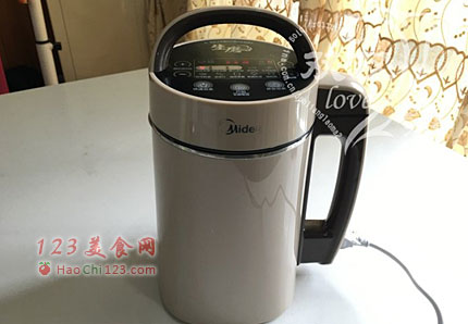 3、倒入清水,确保清水量在上下水位线之间(具体用量要根据自家豆浆机的容量调整),装好后的样子。