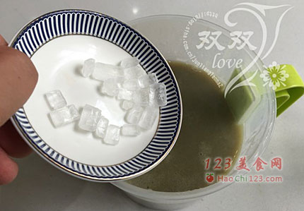 6、过滤好的绿豆百合糊。加入冰糖,调味(冰糖根据个人喜好添加即可,加不加随意,加多少随意)。