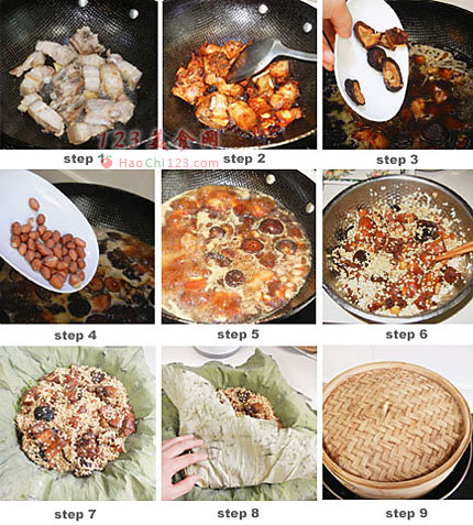 4、尽量糯米放在下面肉放上面,这样糯米会比较入味。