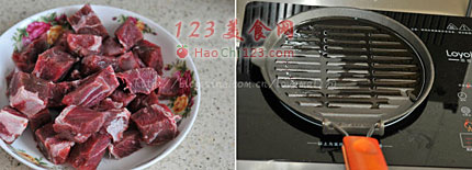2、最好用这种铸铁烤盘,最适合煎牛排,放在电陶炉上,烤盘中放入1大匙食用油,打开开关,500度,如果用煤气就大火。