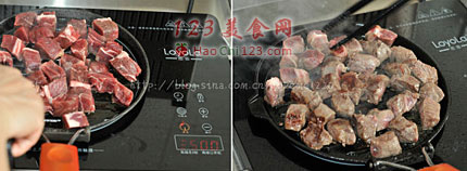 3、用电陶炉要用高温度500度,因为要大火简直才能锁住牛肉的汁水,不要小火煎。