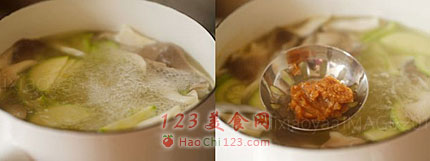 2、味噌不易久煮,等蔬菜快熟时加入味噌溶化,待水再开后就可以关火了,一直让汤大滚的话味噌的香味会跑掉,所以加入味噌后汤再煮开时就要关火,这样能更多的保留味噌的鲜味和营养,味噌如果没能煮熟它特有的香味也出不来,所以控制好时间很关键。