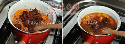 5、我用的是水,如果你家里有蔬菜高汤,用蔬菜汤更浓厚,但是不建议用肉汤啊。
