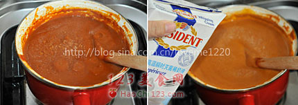 8、最后调入淡奶油(奶油可以根据自己的喜好增减)。
