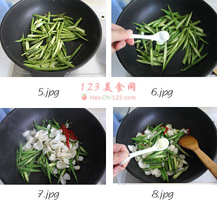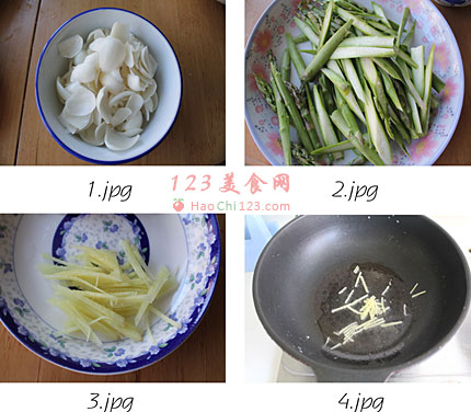 8、放入鸡精调味,快速出锅!切记不可炒时间太久,不然芦笋和百合疲软就没有爽脆鲜嫩的口感了。