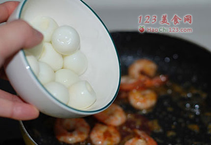 1、材料准备:鹌鹑蛋煮熟去壳,虾仁用料酒、生姜、盐腌制一会,沥干备用。