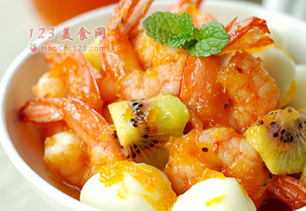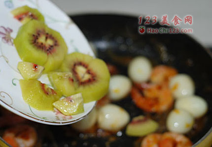 5、加入猕猴桃,稍微翻炒加热一下即可。