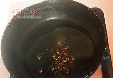 6、热油浇到菜上,放盐,醋调味搅匀。
