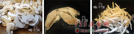 4、起油锅,放入蘑菇片翻炒至微微有点出水。