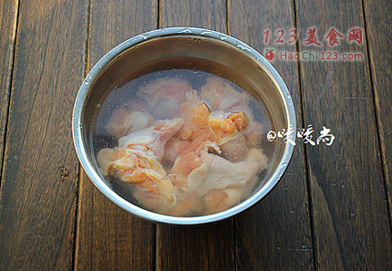 2、买回来的鸡翅冲洗干净用冷水浸泡1小时,中途换水1次去除自身的肉腥味。