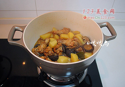 8、待土豆炖至可以用筷子轻易插透后转大火,将汤汁收至浓稠即可关火食用。