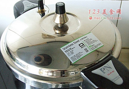 5、盖上锅盖,大火煮开,转成中小火,继续炖制6分钟关火(普通高压锅需要适当延长炖制时间,土鸡不容易炖烂)。