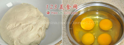 8、面团用之前在揉一次,然后取一部分面,做成两个饺子大小的剂子。