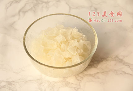 2、干银耳用温水泡发,去蒂,撕成小片;糯米淘洗干净。