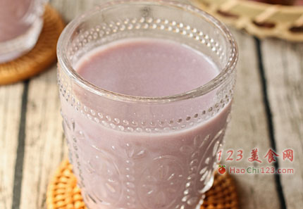 5、紫薯银耳豆浆制作完毕后,将其倒入盛器中,趁温热饮用最佳。