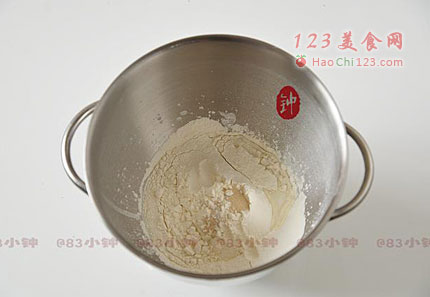 2、材料A中除黄油外的所有材料混合,揉成有一定延展性的面团。