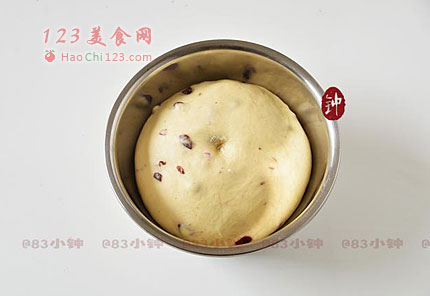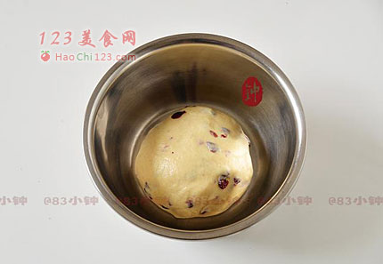 4、加入酒渍果干揉匀,盖上保鲜膜,醒发至2倍大。