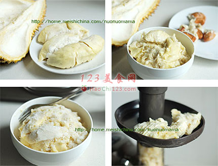 5、榴莲冰激凌就快速制成了,这次我就做了两小块的的量,一人份正好。