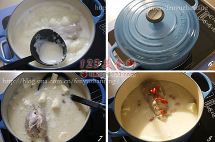 2、用豆浆炖煮羊腿时就不要再放姜了,否则豆浆会凝固成絮状。
