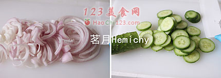 6、黄瓜切片,不要太薄了。