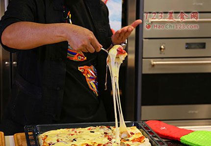 4、放入提前预热200度的烤箱、上下火烤15分钟奶酪拉丝即可。