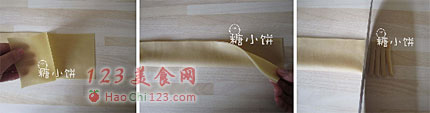 6、切好的面片摊开以后就是长10CM宽3.5CM的面片。