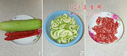 3、西葫芦起油锅时油不用加太多,腊肠本身也有油的!而且腊肠不用另外起油锅,起油锅容易焦掉。