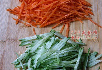 5、胡萝卜和黄瓜可以生用,也可以提前焯烫。