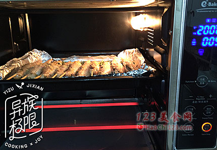 7、烤箱预热200度,上下火加热风,烤20分钟,中间要把烤盘拿出来,倒去盘中的鱼汤。