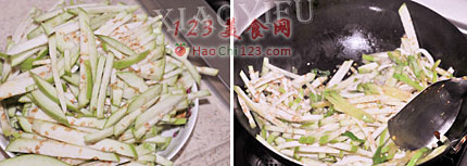 2、油的量要比烧茄子的量少很多,大概1大匙或者2大匙就差不多了。