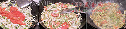 3、西红柿的汤汁一定要炒出来让茄子均匀吸收西红柿汁。