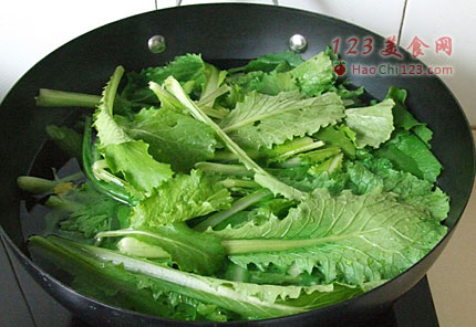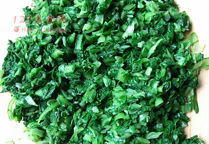 2、小白菜去根清洗沥干;入开水中焯烫至变色捞出。