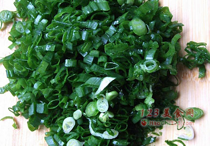 6、以上原料混合;先把除葱以外的原料加油、盐和一点点味精(不喜者省略)拌匀,最后把葱碎拌入(葱过度搅拌会改变味道)。