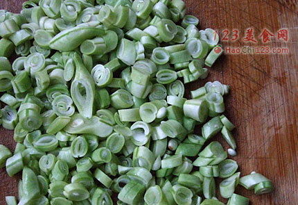 3、芸豆摘去筋角,然后切碎;厚度自己掌握,太薄的没有口感,太厚的不容易包。