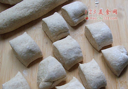 7、饧发好的面团,取出揉匀,排气;分割成等大的面剂。