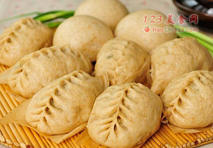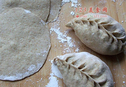 8、擀成中间厚四周薄的包子皮,尽可能多得包入馅料。