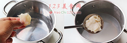 3、取一个小锅烧开水,将腌制好的鱼片焯成7-8成熟。