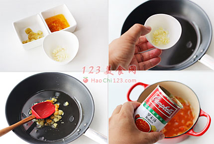 4、小米辣椒切成小段备用。炒锅中放入植物油爆香蒜末与小米辣椒与海南灯笼椒,然后加入一罐罗宋汤并加入等量的水与少许浓缩鸡汤。烧开后加入鱼片小火烧熟,出锅前根据口味撒入香菜。